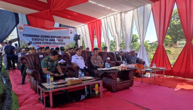 “Kami bersama jajaran Forkopimda dan masyarakat sekitar tidak hanya melakukan penanaman jagung, tetapi juga menyerahkan bibit kepada pengasuh pesantren sebagai simbol kemandirian pertanian,” tegas Kapolres.