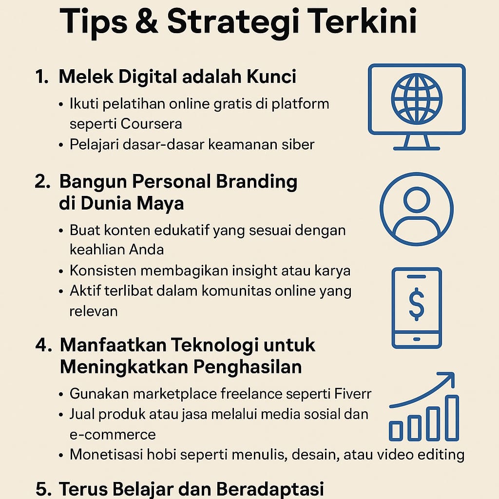 Mengembangkan hidup di era digital bukan tentang siapa yang paling canggih teknologinya, tapi siapa yang paling siap beradaptasi dan paling bijak memanfaatkan peluang. Dengan tips dan strategi terkini di atas, Anda bisa menjadi pribadi yang cerdas, produktif, dan unggul di era serba digital ini.