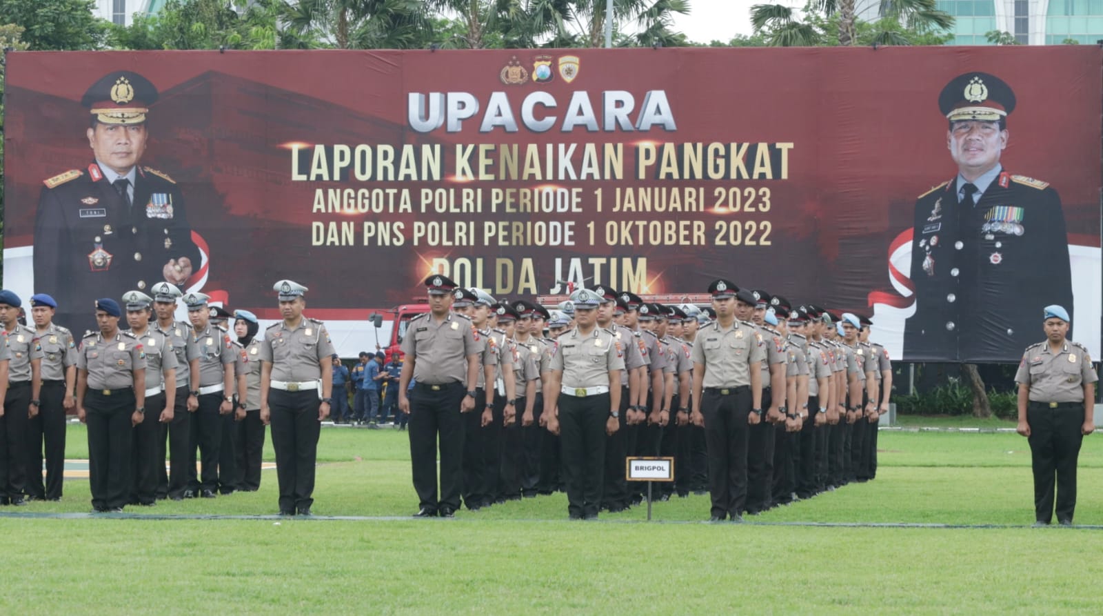 Dalam sambutannya, Kapolda Jatim Irjen Pol Dr.Toni Harmanto,MH mengucapkan selamat kepada sejumlah anggota Polda Jatim yang mendapat kenaikan pangkat setingkat lebih tinggi.