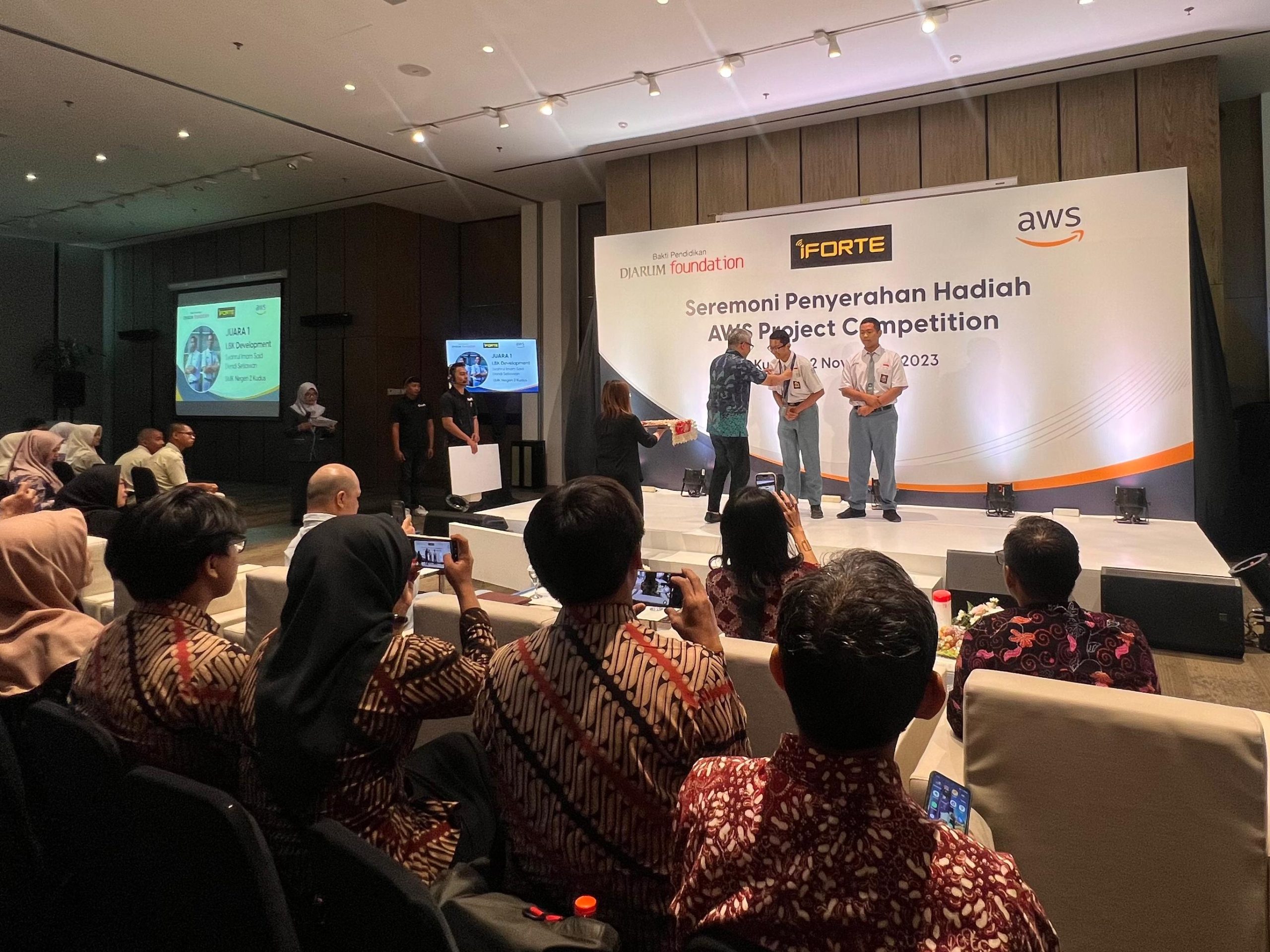 1.505 siswa dan 55 guru dari kompetensi keahlian Teknik Jaringan Komputer dan Telekomunikasi (TJKT) di 11 SMK yang ada di Kudus mengikuti pelatihan singkat tentang komputasi awan di bulan Juli 2023. Pelatihan singkat ini bertujuan memberikan pemahanan awal tentang komputasi awan serta menjaring siswa berkualitas yang memiliki keterampilan digital terutama pada komputasi awan. Kemudian terpilih 42 guru dan 158 siswa yang diberikan kesempatan mengikuti pelatihan lanjutan sertifikasi AWS dari iForte.