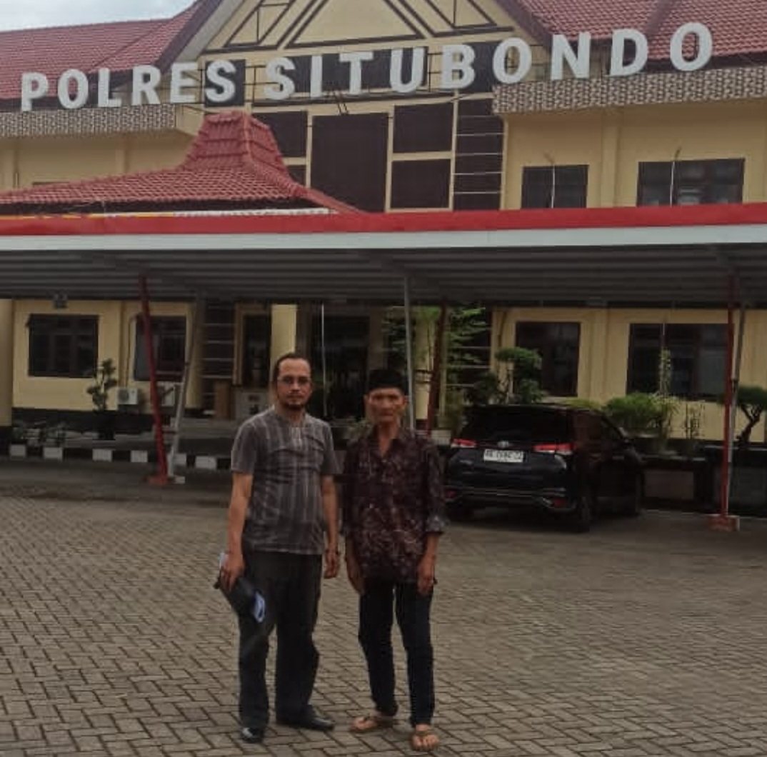 Didampingi kuasa hukumnya Taufik Hidayah, S.H., Kakek tua itu mendatangi Polres Situbondo untuk memenuhi panggilan penyidik