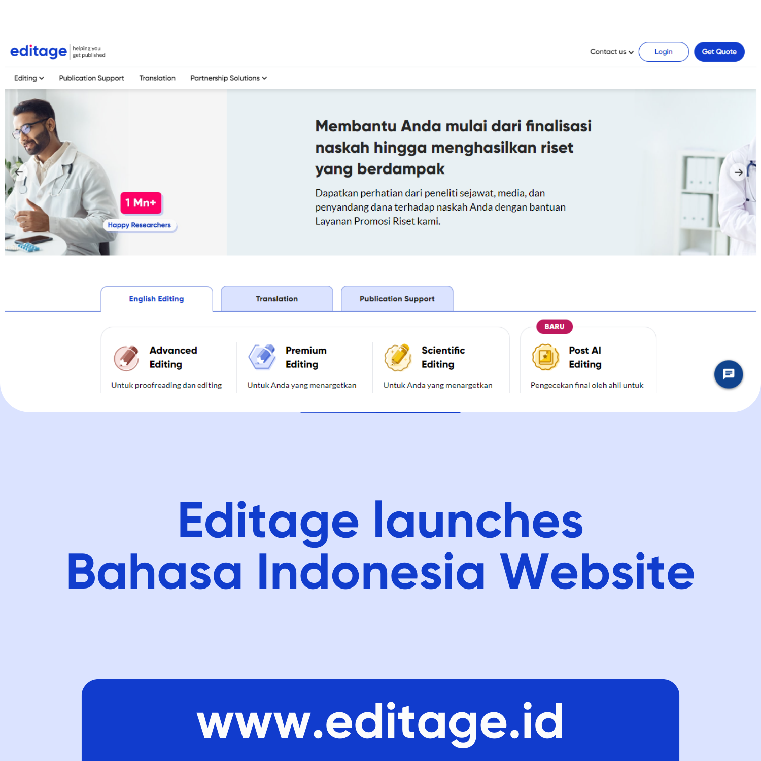 Editage website in Bahasa, Indonesia, reinforcing our commitment to providing