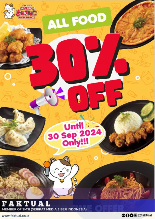Karaoke Manekineko is thrilled to announce a special promotion offering a 30% discount on all menu items across all locations in Malaysia. This exclusive deal is available until September 30, 2024.