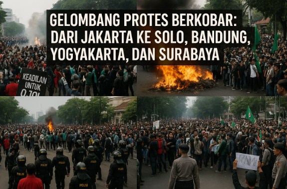 FAKTUAL.CO.ID – Gelombang aksi demonstrasi merebak di berbagai wilayah Indonesia pada Jumat (29/8). Ribuan massa yang terdiri dari pengemudi ojek online (ojol), mahasiswa, dan buruh turun ke jalan menyuarakan beragam tuntutan mulai dari keadilan atas tewasnya seorang driver ojol di Jakarta hingga kritik terhadap kebijakan pemerintah dan DPR.