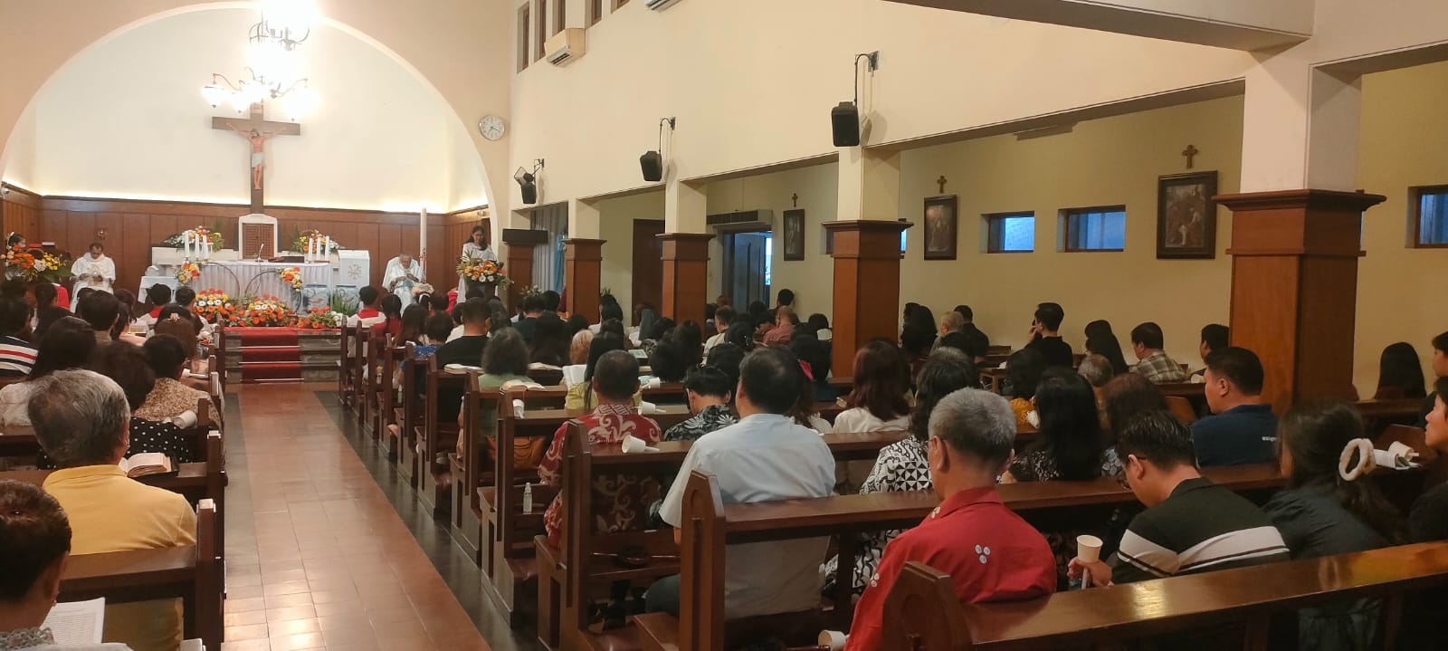 Ibadah Malam Paskah tahun ini mengangkat tema mendalam, “Datanglah kepadaku maka kamu akan hidup,” yang disampaikan secara tatap muka kepada para jemaat. Pendeta Romo Bonavasius Budiono, sebagai penanggung jawab sekaligus pimpinan kegiatan, memimpin jalannya ibadah yang terdiri dari pembukaan yang khusyuk, lantunan doa-doa yang menyentuh, alunan pujian-pujian yang membangkitkan semangat, pembacaan Firman Tuhan yang menjadi inti perayaan, serta ditutup dengan puji-pujian dan doa berkat yang memberikan kedamaian.