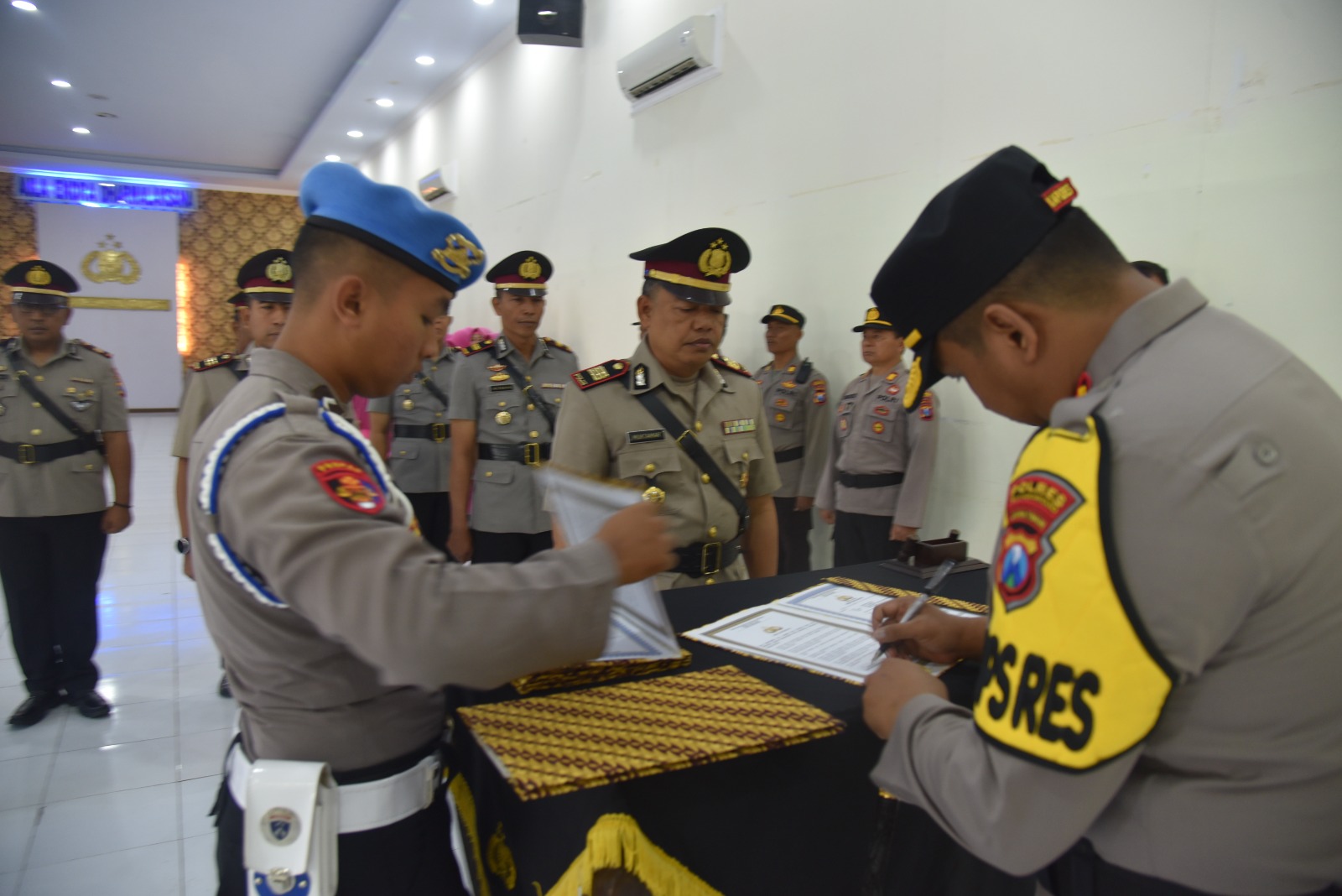 Upacara sertijab tersebut digelar di Aula Polres Bondowoso dan diikuti oleh para PJU Polres Bondowoso serta jajaran Polres Bondowoso, Senin 03/07 2023.