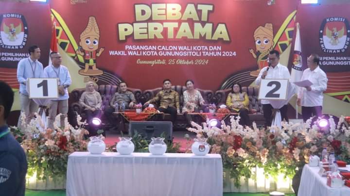 Kepulauan, Nias, FAKTUAL.CO.ID – Komisi Pemilihan Umum (KPU) Kota Gunungsitoli menggelar Debat Publik Tahap Pertama pada Pemilihan Calon Wali Kota dan Wakil Wali Kota Gunungsitoli Tahun 2024 dengan mengusung tema “Tata Kelola Pemerintah, Infrastruktur, dan Teknologi Informasi”, bertempat di Auditorium Teteholi STT BNKP Sundermann Jl. Pendidikan No. 19 Kelurahan Ilir Kota Gunungsitoli, Jumat (25/10/2024).