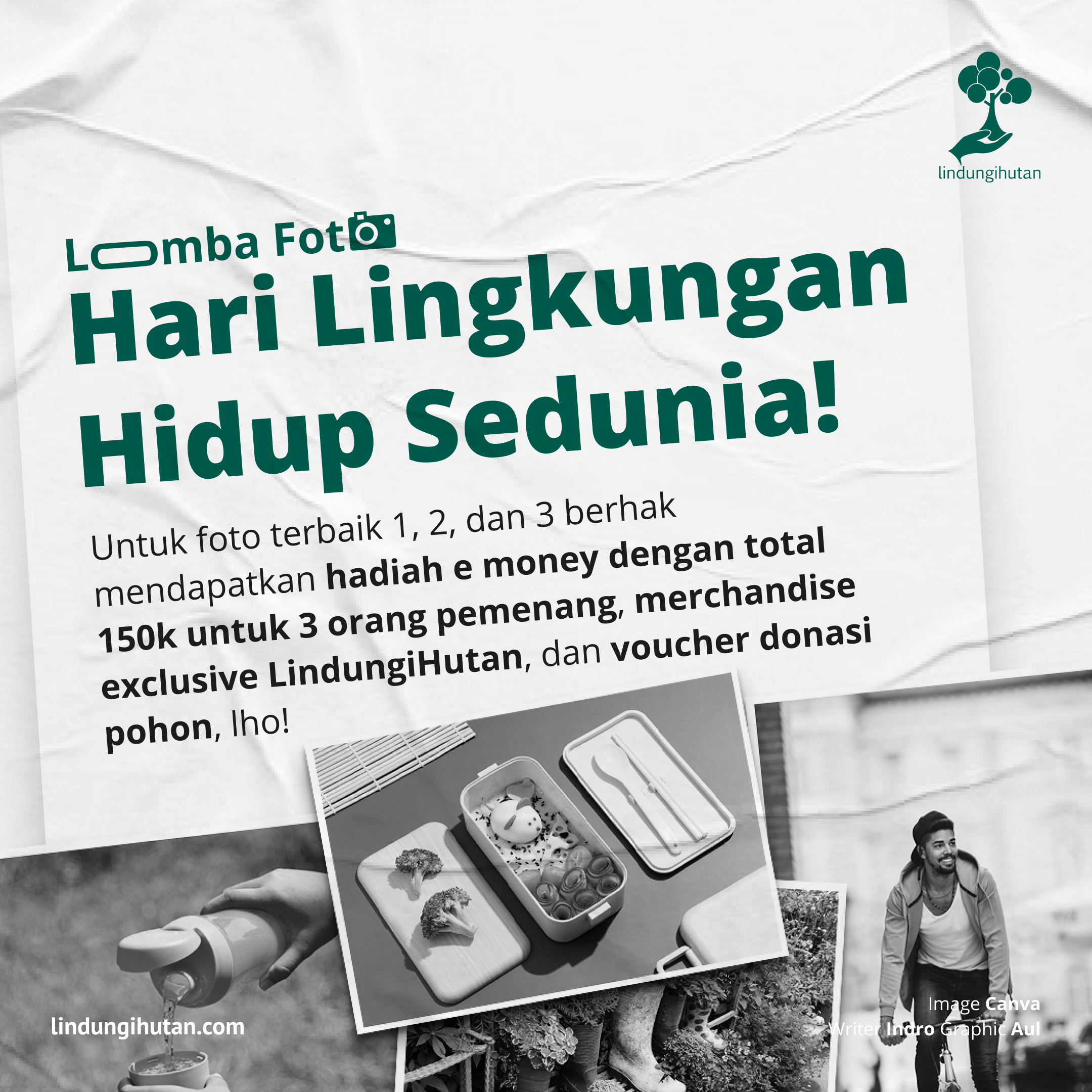 LindungiHutan mengadakan lomba foto dalam rangka memperingati Hari Lingkungan Hidup Sedunia. Lomba ini terbuka untuk umum bertujuan meningkatkan kesadaran akan pentingnya menjaga lingkungan melalui tindakan sederhana/aktivitas sehari-hari.