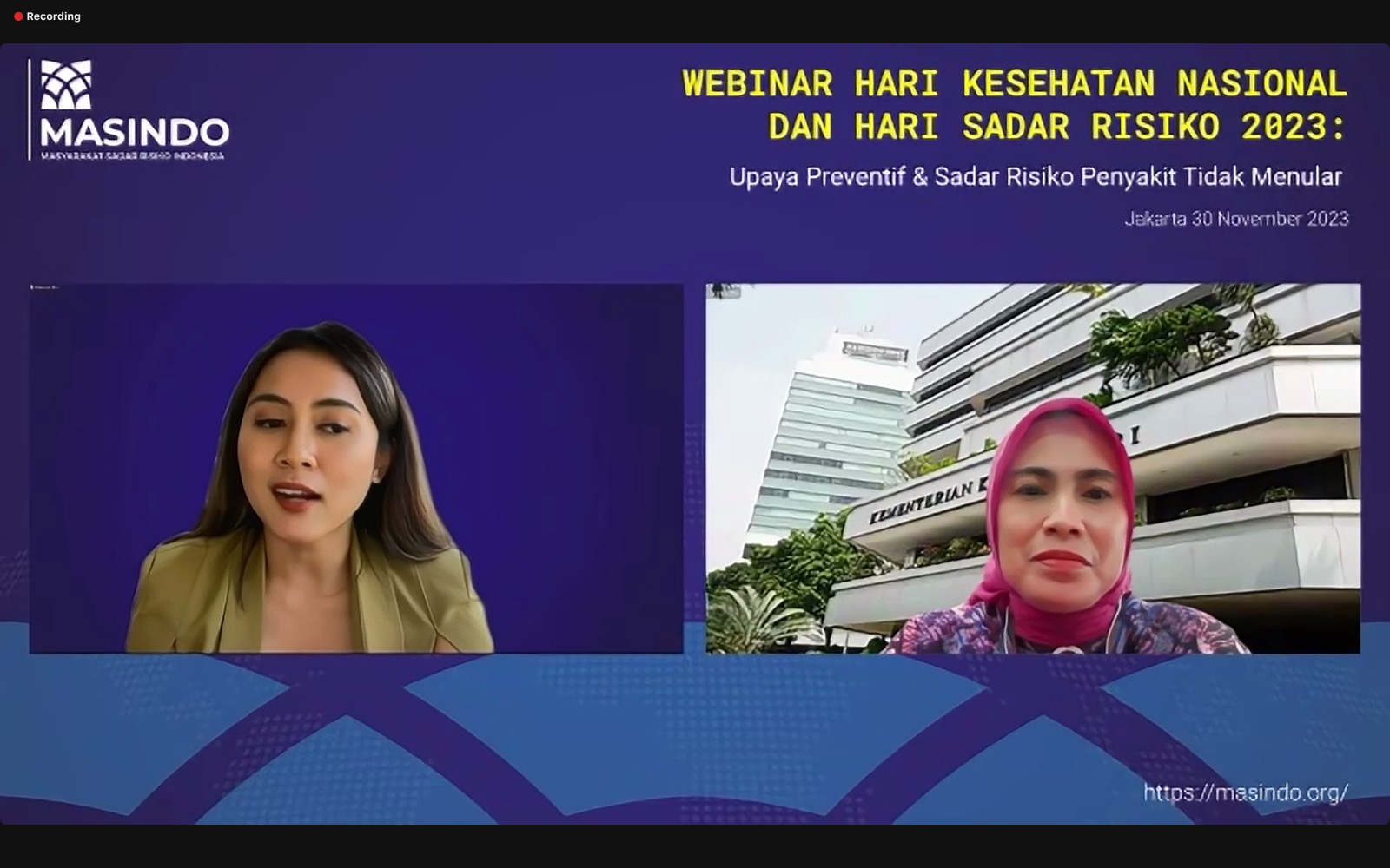 Dalam semangat peringatan Hari Kesehatan Nasional 2023, Masyarakat Sadar Risiko Indonesia (MASINDO) menggelar webinar bertajuk “Upaya Preventif & Sadar Risiko Penyakit Tidak Menular”. Acara yang berlangsung di Jakarta pada Kamis (30/11/2023) ini mendorong aksi untuk meningkatkan kesadaran tentang Penyakit Tidak Menular (PTM) di Indonesia.