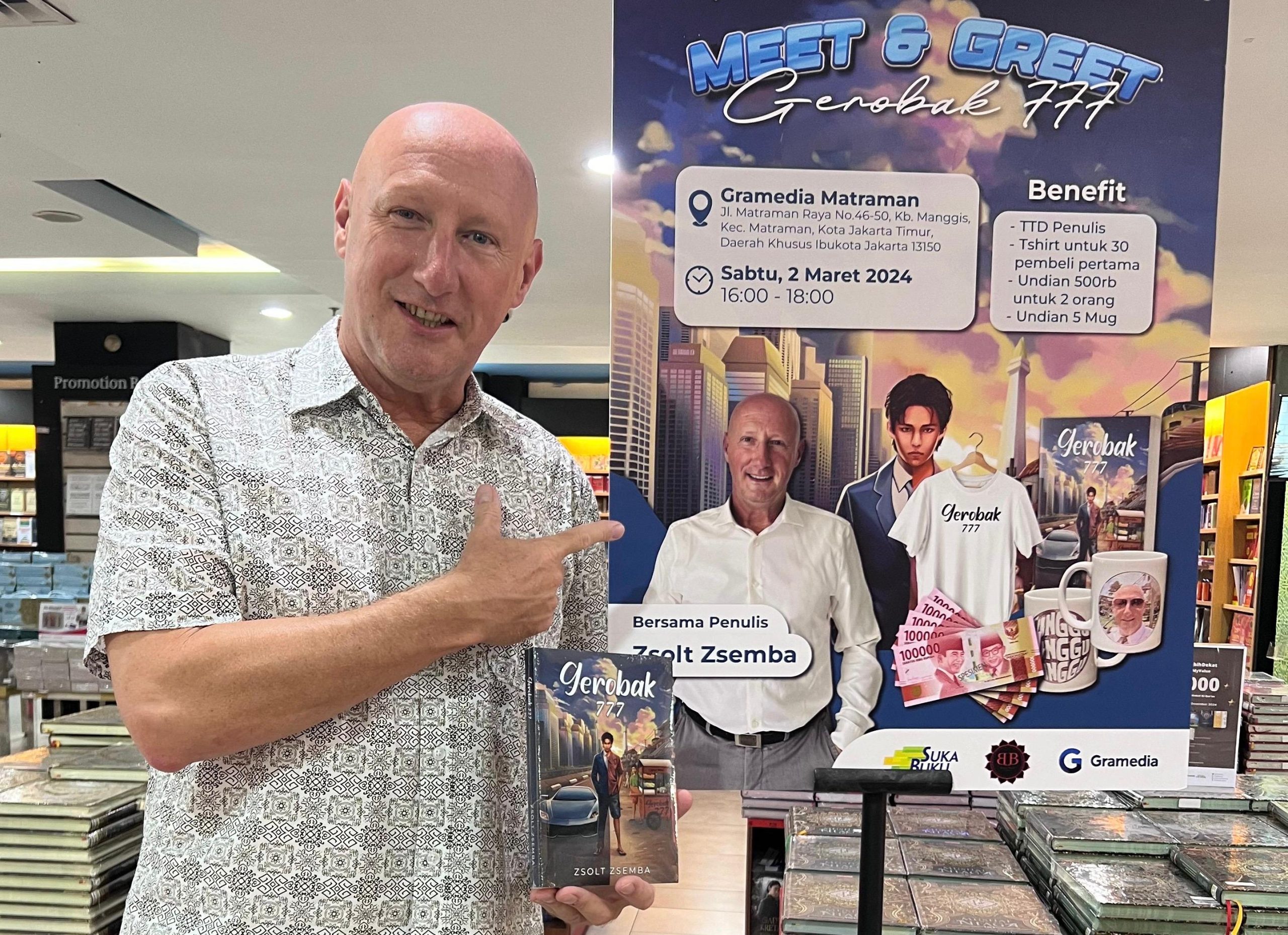 Jakarta, 22 Maret 2024 – Penulis asal Canada yang biasa disapa Zsolt Zsemba, baru saja meluncurkan novel pertamanya di Indonesia yang berjudul Gerobak 777.