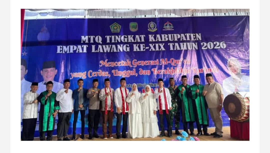 Empat Lawang, FAKTUAL.CO.ID — Lantunan ayat suci Al-Qur’an kembali menggema di Bumi Saling Keruani Sangi Kerawati seiring dibukanya Musabaqah Tilawatil Qur’an (MTQ) ke-XIX Tingkat Kabupaten Empat Lawang Tahun 2026, Minggu (15/2/2026), di Lapangan Bola Talang Jawa, Kecamatan Tebing Tinggi.