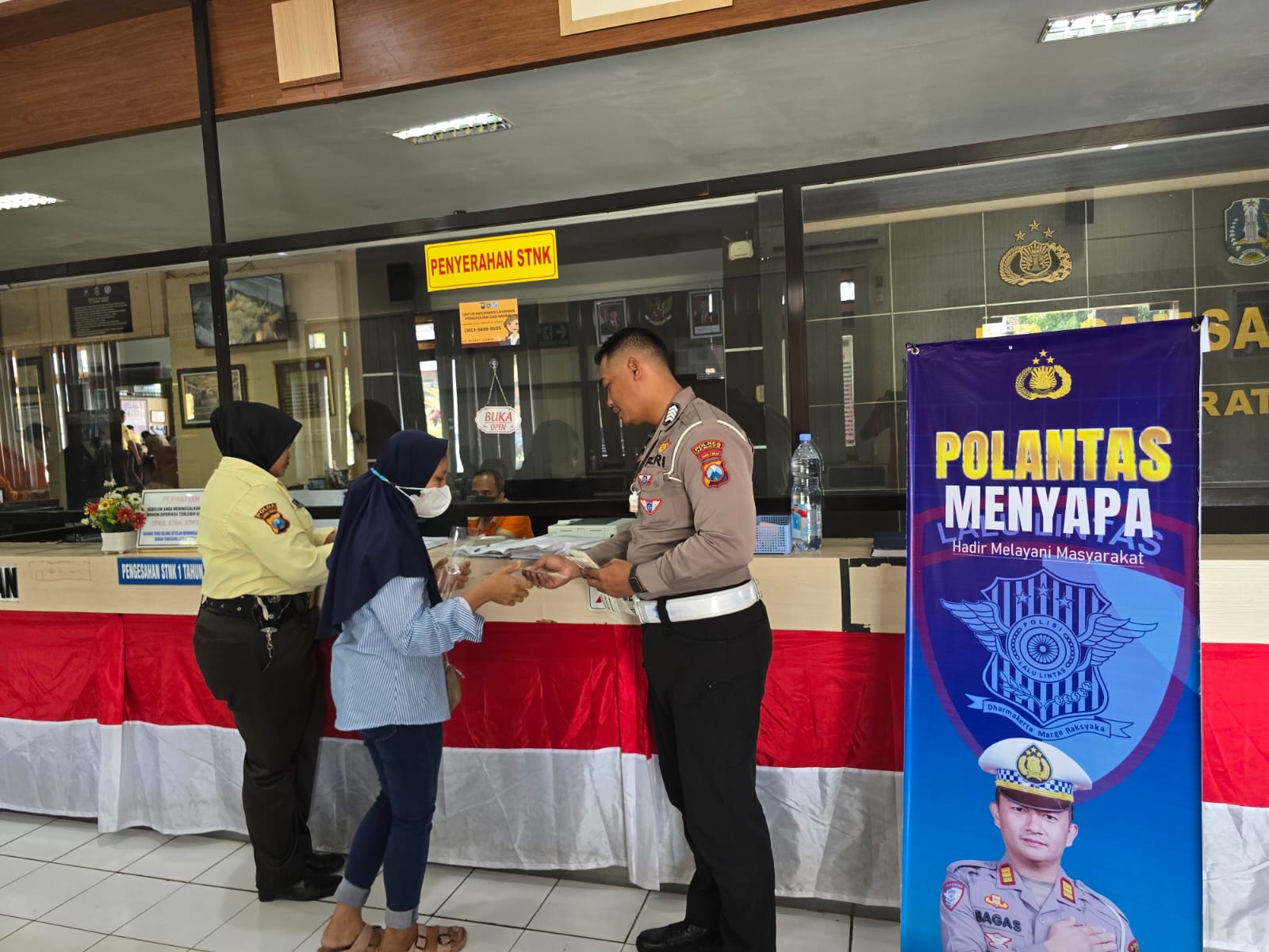 Melalui kegiatan ini, personel Satlantas secara langsung berinteraksi dengan masyarakat, baik pemohon Surat Izin Mengemudi (SIM) maupun wajib pajak kendaraan bermotor.