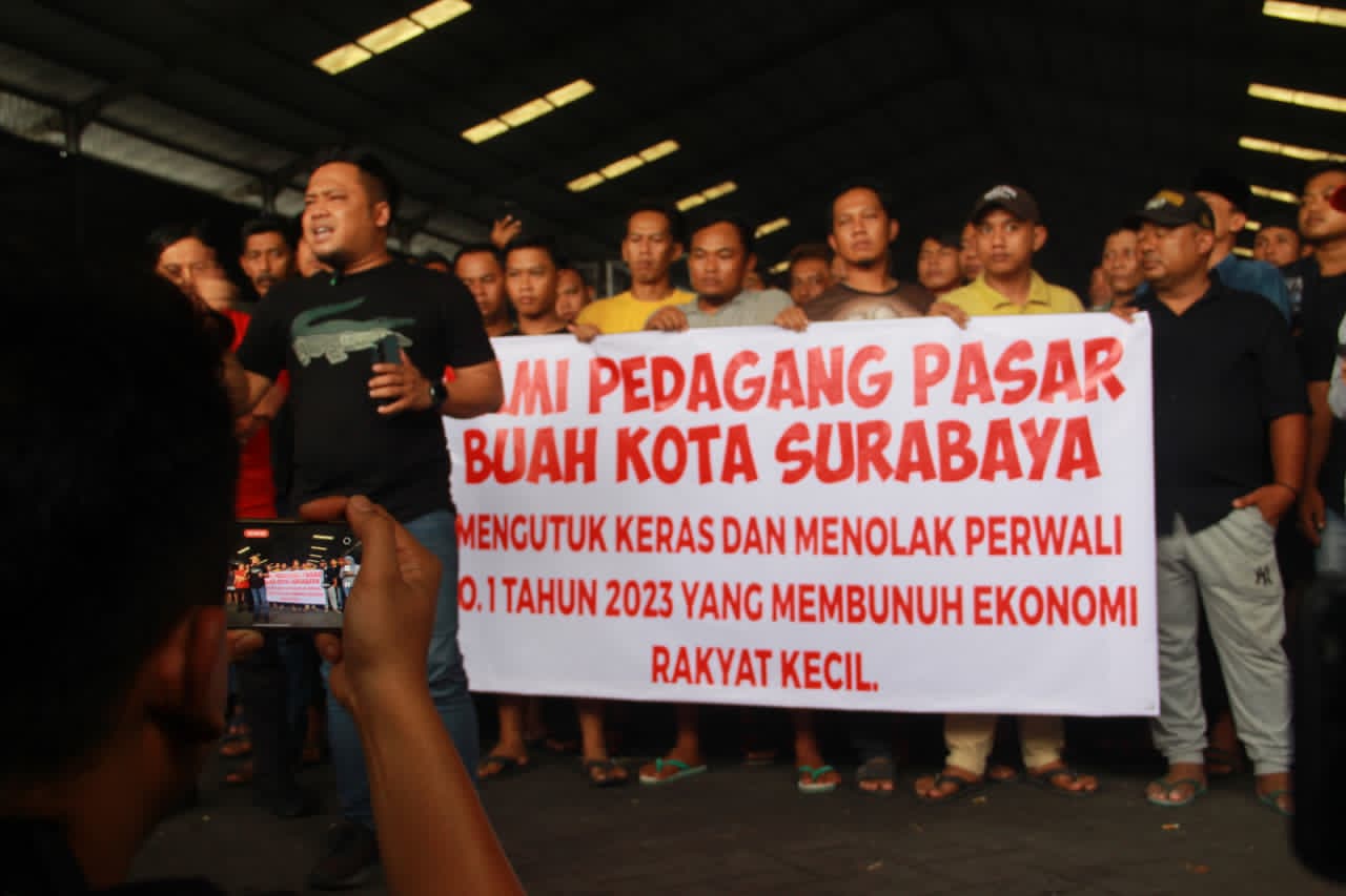 Dalam aksi yang berlangsung tertib tersebut, para pedagang membawa spanduk dan poster berisi tuntutan agar pemerintah kota mencabut atau meninjau ulang aturan tersebut. Mereka menegaskan bahwa pembatasan jam operasional justru mengancam mata pencaharian pedagang buah di Surabaya.