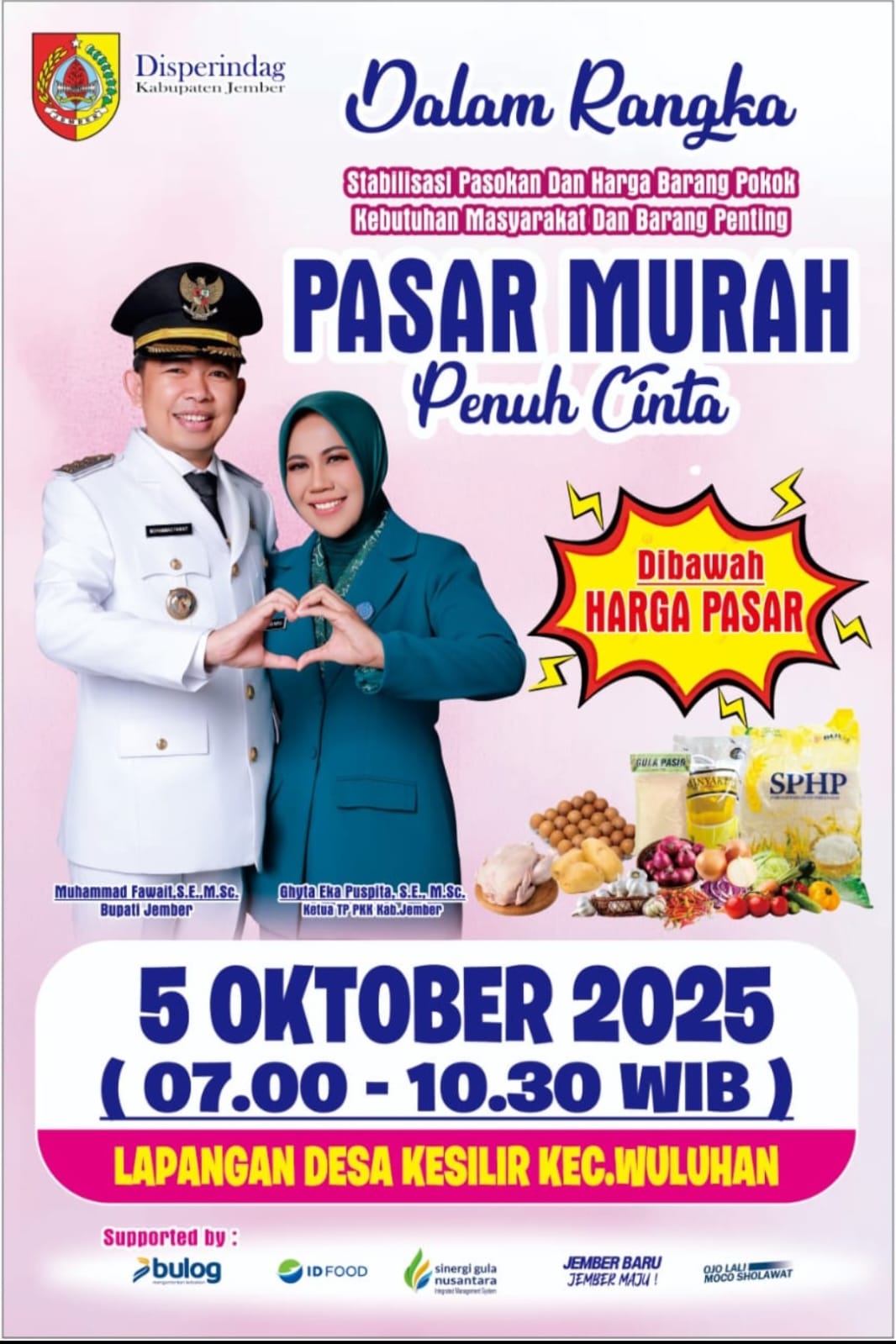 JEMBER, FAKTUAL.CO.ID – Pemerintah Kabupaten (Pemkab) Jember resmi memperluas jangkauan program Pasar Murah hingga ke tingkat kecamatan mulai Oktober 2025. Langkah ini ditempuh setelah sebelumnya program tersebut hanya digelar di beberapa pasar dalam kota seperti Pasar Tanjung, Mangli, Kreongan, dan Tegalbesar.