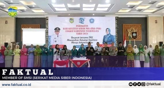 Tasikmalaya, FAKTUAL.CO.ID – Bupati H. Ade Sugianto didampingi Ketua TP PKK ibu Hj. Ai Diantani Sugianto, menghadiri Peringatan Hari Kesatuan Gerak PKK (HKG-PKK) Tingkat Kabupaten Tasikmalaya, di Gedung Aula Islamic Center Kabupaten Tasikmalaya, Selasa (10/9/2024).