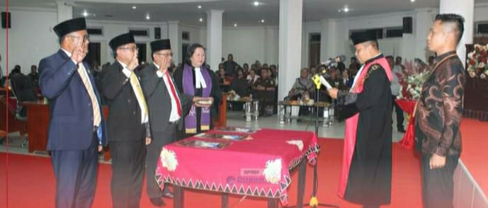 Pengucapan sumpah/janji Pimpinan DPRD Kabupaten Nias defenitif tersebut dilaksanakan oleh Ketua Pengadilan Negeri Gunungsitoli, Zulfadly S.H., M.H.