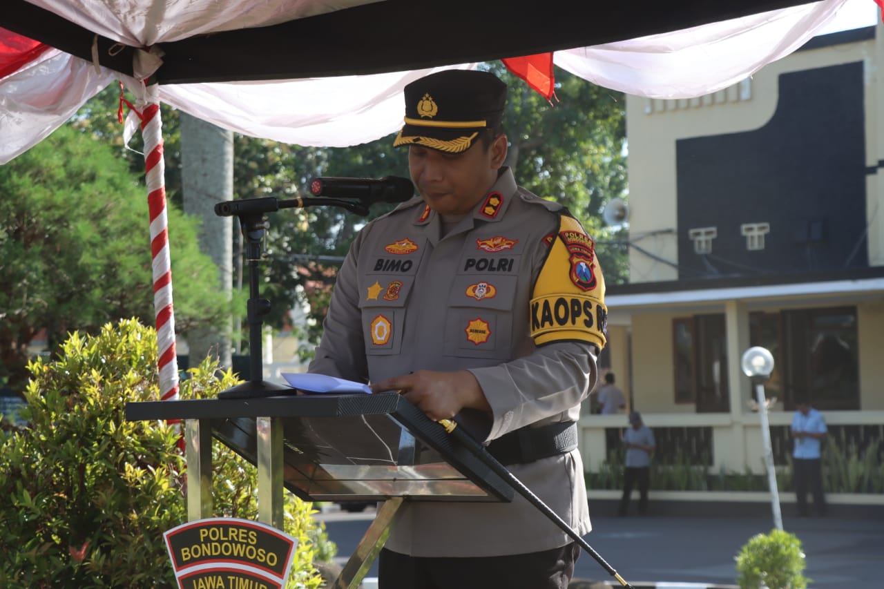 Kapolres Bondowoso AKBP Bimo Ariyanto, SH. S.I.K dalam sambutannya mengatakan, “Satuan Keamanan Lingkungan (Satkamling) merupakan Mitra Polri yang menjaga keamanan dilingkungan warga masyarakat. Secara tehnis dan taktis pembinaan Satkamling dimasing-masing Desa di lakukan oleh Bhabinkamtibmas, “ujar Kapolres Bondowoso.