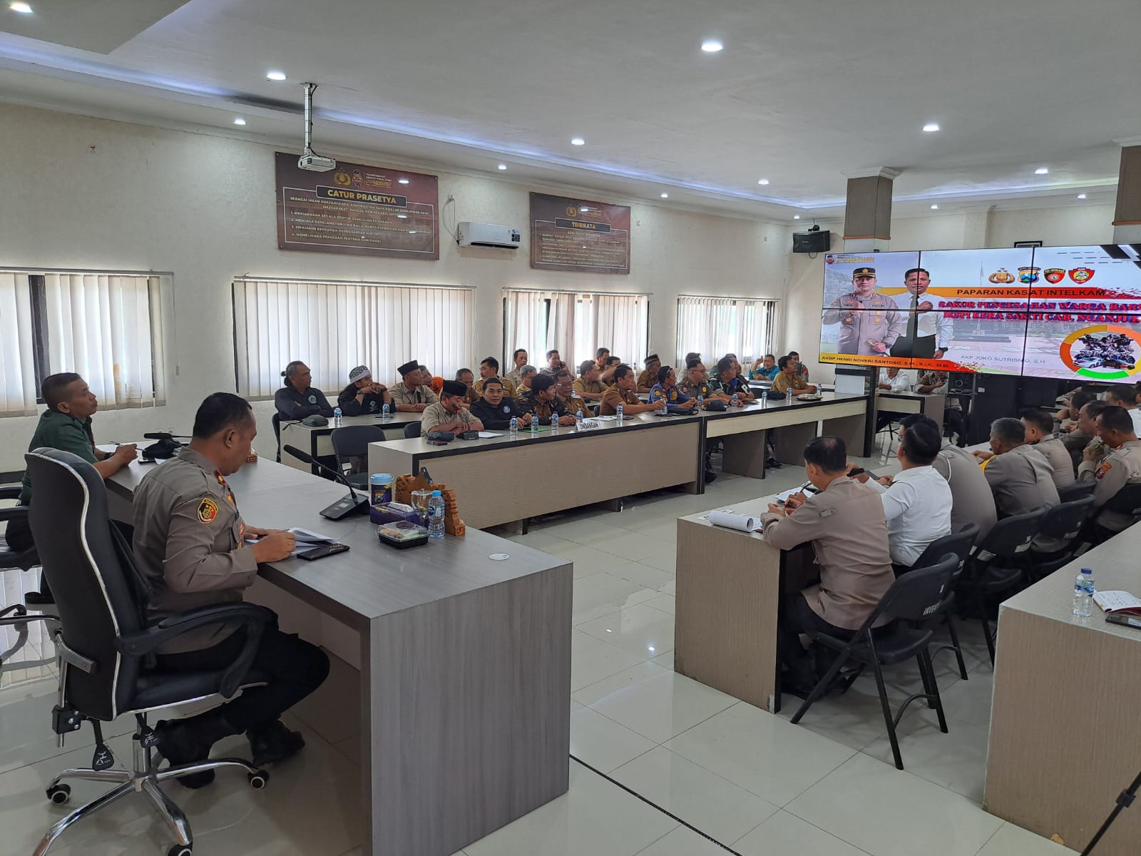 Wakapolres Nganjuk KOMPOL Andria Diana Putra, S.E., M.H., yang memimpin rakor mewakili Kapolres Nganjuk AKBP Henri Noveri Santoso, S.H., S.I.K., M.M., menegaskan pentingnya antisipasi bersama terhadap potensi gangguan kamtibmas selama proses pengesahan berlangsung.