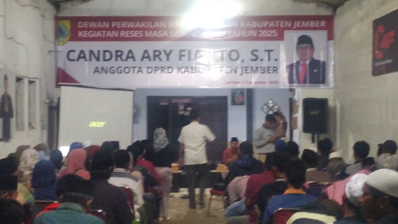 Jember, FAKTUAL.CO.ID – Anggota DPRD Kabupaten Jember, Candra Ary Fianto S.T., melaksanakan kegiatan Reses Masa Sidang ke-III Tahun 2025 di Kalisat Kabupaten Jember (3/12/2025) malam