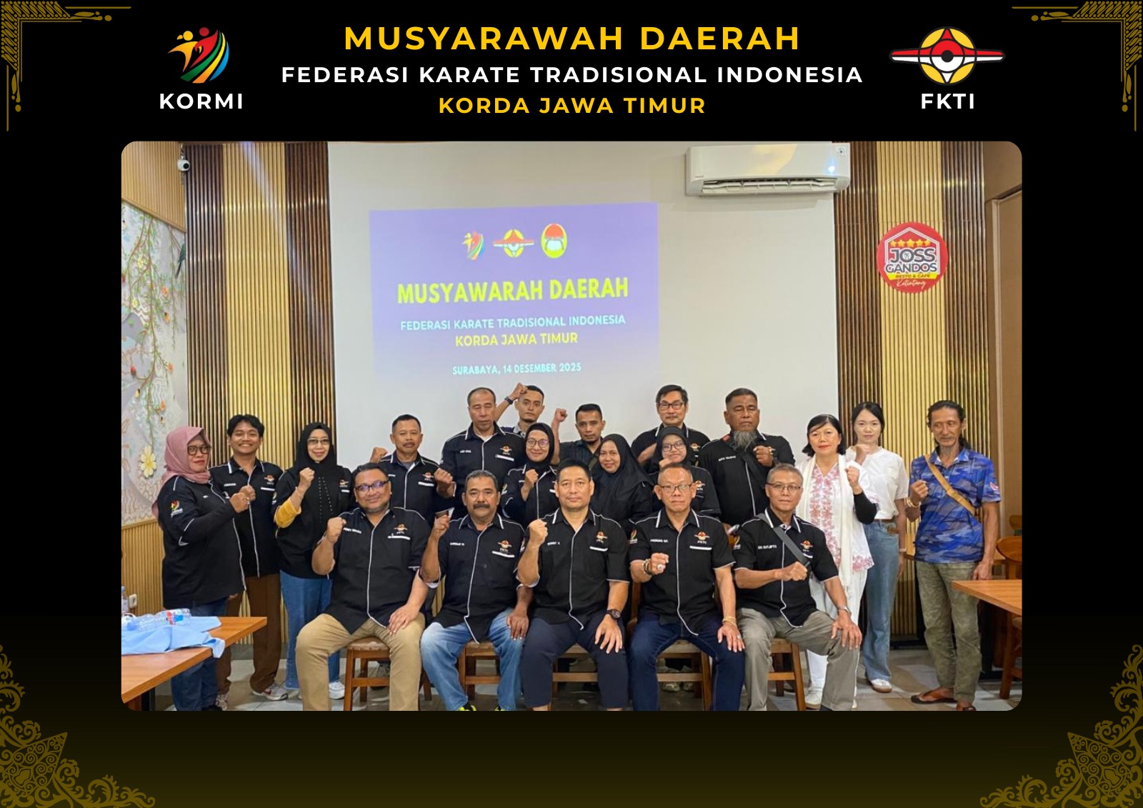 Jember, FAKTUAL.CO.ID – Federasi Karate Tradisional Indonesia (FKTI) Koordinator Daerah (Korda) Jawa Timur resmi memiliki ketua baru untuk periode 2025–2029. Sensei Rommy terpilih sebagai Ketua FKTI Korda Jawa Timur melalui Musyawarah Daerah (Musda) yang digelar di Cafe Joss Gandos, Sidoarjo, Minggu (14/12/2025).