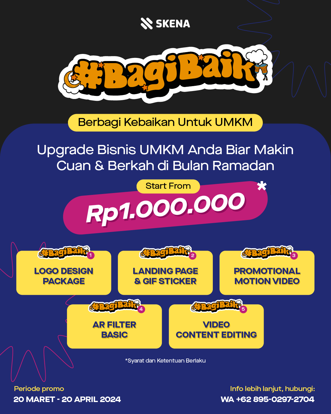 Untuk informasi lebih lanjut tentang program “BagiBaik: Berbagi Kebaikan untuk UMKM” serta layanan-layanan kreatif yang ditawarkan oleh SKENA, kunjungi situs web mereka atau hubungi 0811-4220-204.