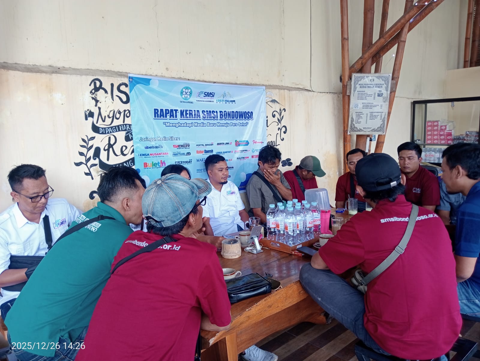 Bondowoso, FAKTUAL.CO.ID — Di penghujung tahun, Serikat Media Siber Indonesia (SMSI) Kabupaten Bondowoso menggelar rapat kerja bertajuk “Menghadapi Media Baru Menuju Pers Sehat”. Kegiatan tersebut berlangsung di Kedai Mbah Tekun, Bondowoso, dan diikuti oleh para pengurus serta anggota SMSI, Sabtu (26/12).
