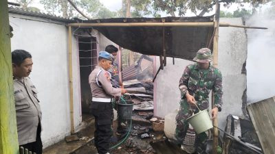 Personil Polsek Cermee Bersama TNI berjibaku Memadamkan Api Dalam Kebakaran Rumah di Desa Suling Kulon